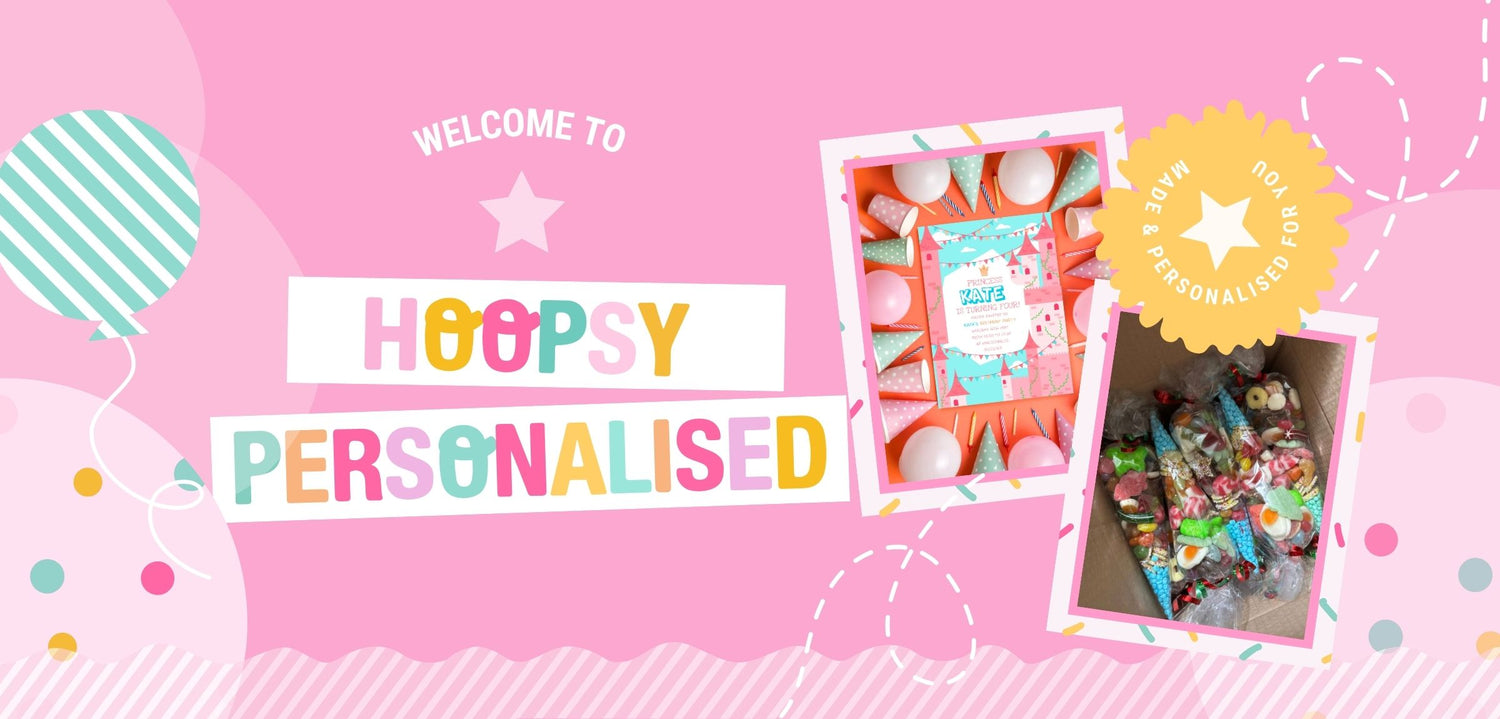 Hoopsy Personalised creates sweet treats and personalised party essentials to make every occasion extra special. We specialise in sweet cones, personalised sweet gifts, and custom print items including stickers, wrapping paper and cards. We also offer a wide range of custom boxes, from small wedding and christening favours right through to full party boxes, perfect for birthdays and celebrations of all kinds.